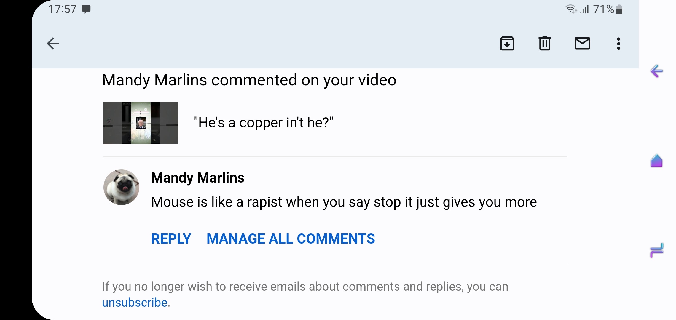 Notorious YouTube Troll who identifies as a Mouse, has been likened to a rapist by YouTube commentator Mandy Marlins.