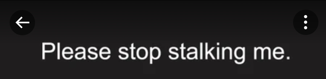 "Please stop stalking me," the stalker said, a strange mix of irony and desperation in his voice. He was a man at wit's end, unable to understand why someone would want to torment him this way. But it was more than that - he felt like he was losing his grip on reality, and he couldn't help but wonder if everything was just a figment of his imagination. It was as if he had become a prisoner of his own paranoia. But the truth was, there was someone there, watching him, stalking him, even though he couldn't see them.